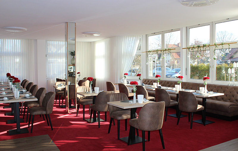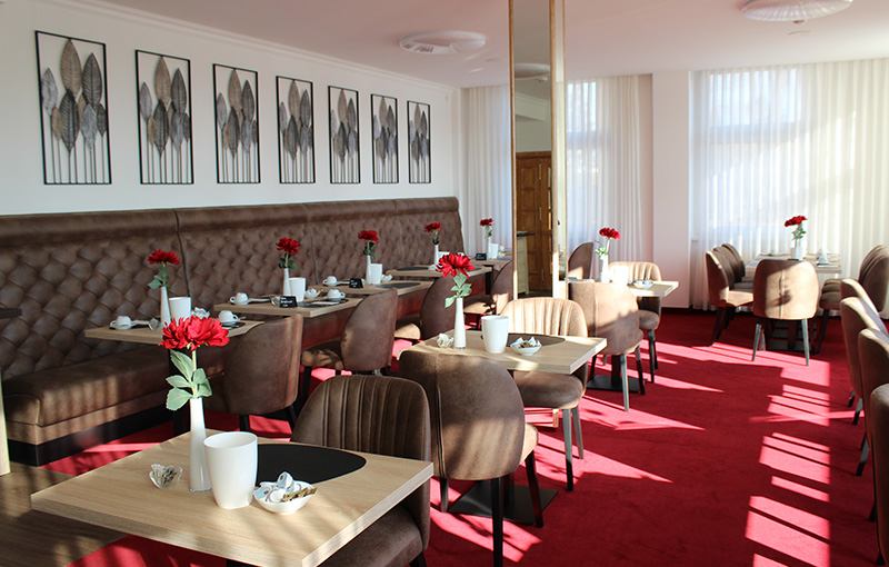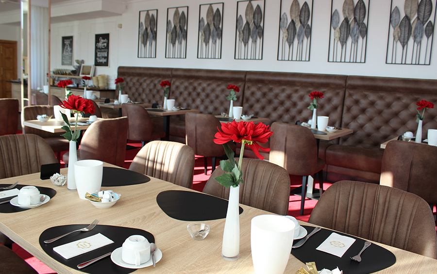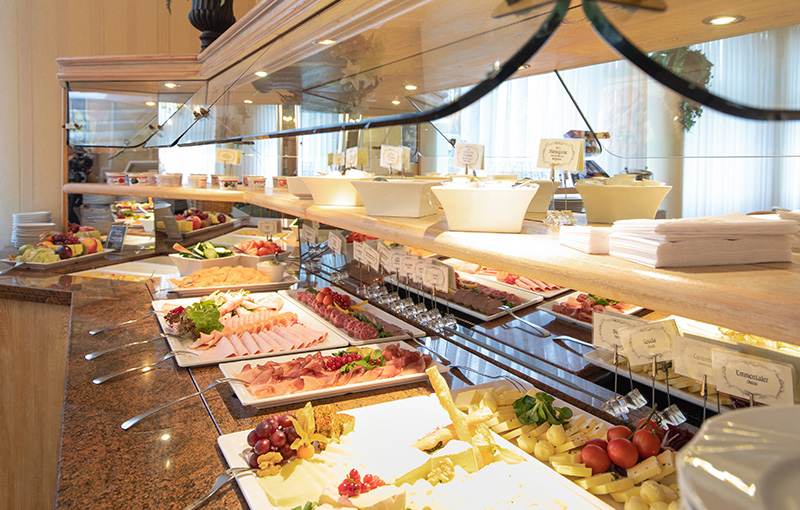 Lassen Sie sich am Morgen in unserem Frühstücksraum mit edlem Flair von unserem reichhaltigen Frühstücksbuffet verwöhnen oder genießen Sie am Abend in unserem stilvoll eingerichteten Restaurant köstliche Spezialitäten.